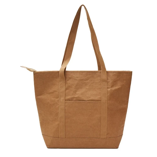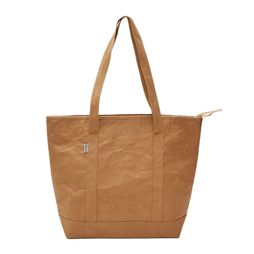 Cooler con formato tipo cartera. Realizado en papel kraft, con interior termico de PEVA. Medidas: 30,5 x 12 x 34 cm. Capacidad: 12L. Reuseme.
