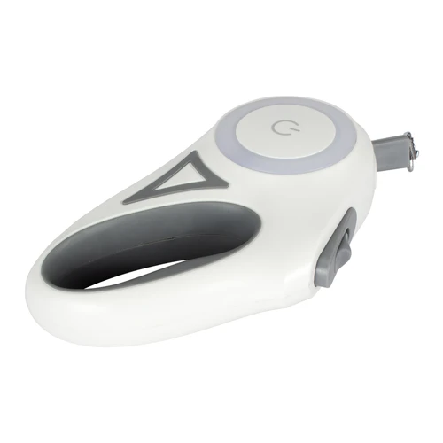 Correa extensible de 3mts para mascota, en plástico ABS blanco con detalles grises y correa de nylon color gris con sistema de traba. Contiene una linterna LED luz blanca + juego de luces LED de colores en círculo central. Usa 2 pilas AAA (no incluídas). Presentación en caja de cartón blanco de regalo.