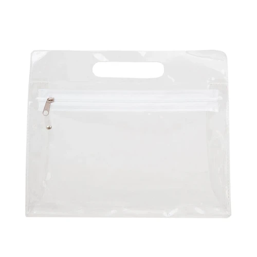 Necessaire de PVC transparente con cierre. Cuenta con fuelle, permitiendo mayor capacidad de guardado. Medidas: 25x20,5x7cm.