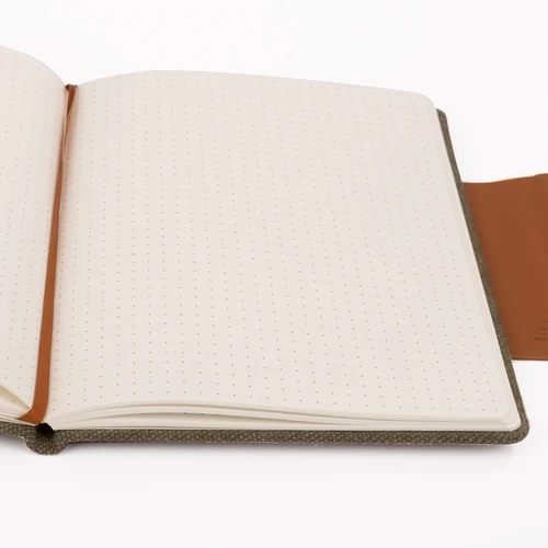 GIVERNY es mucho más que un cuaderno: es una declaración de creatividad con conciencia. Con tapas de lona reciclada y detalles en cuero PU, este cuaderno A5 de tapa dura combina estilo y sostenibilidad en un diseño elegante y funcional. Su cierre imantado mantiene todo en orden, mientras que su cinta marcadora y bolsillo interior añaden practicidad. Sus 80 hojas punteadas de papel marfil cuentan con certificación FSC, lo que garantiza su origen en fuentes forestales gestionadas de forma responsable. Los materiales reciclados utilizados tienen certificación GRS, avalando procesos transparentes y sostenibles desde el origen. Disponible en tonos crudo, azul y verde, GIVERNY es ideal para marcas que buscan promover la organización, el diseño y el respeto por el entorno en cada detalle.