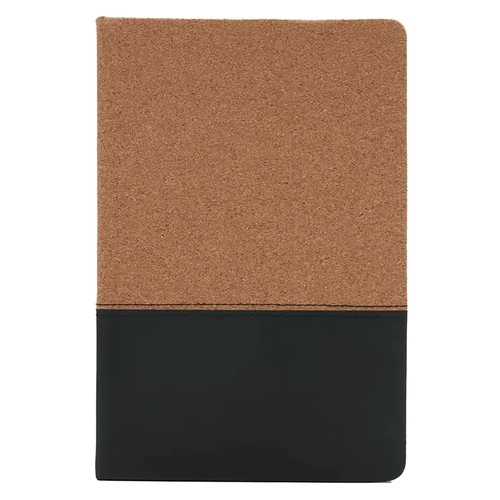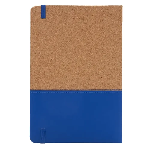 Cuaderno con tapa de corcho y PU. Cinta marca página y elástico de cierre. 80 hojas rayadas. Medidas: 14,5 x 21 cm. ReUseMe.