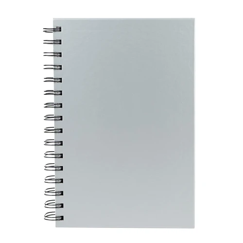 Cuaderno tamaño A5, con tapas de cartón forrado de 650gsm, con 100 hojas blancas con cuadriculado de 5x5 mm. y anillado metálico doble cero.