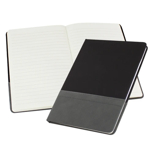 Elegante cuaderno tamaño A5, con cubierta de cartón piedra forrada en Velvet PU (tela aterciopelada) bicolor de 3mm de espesor, con doble costura. Interior 80 hojas lineadas amarillas de 80gsm. Presentación individual en bolsa de polipropileno.