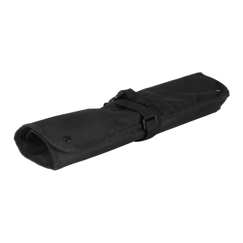 Delantal de tela raquelada negra con 3 prácticas herramientas para asado. Plegable y transformable en bolso. Fácil para bordar o imprimir.