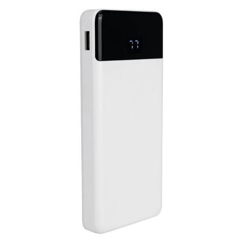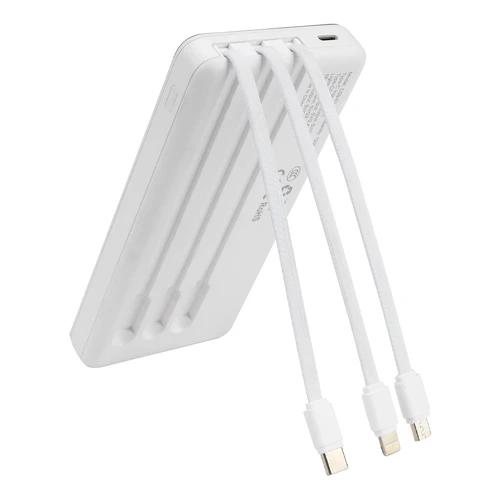 Deluxe cargador Power-Bank USB con pantalla indicador de carga. Capacidad 10000mAh. Amplio espacio para logo. Input: DC 5V 3A / Output: DC 5V 3A. Viene con 3 cables incorporados: micro USB, Tipo C, i-phone. Incluye cable de carga USB / Tipo C. Incluye manual de uso en español e inglés. Presentación en Estuche de cartón forrado color blanco. Producto con Certificaciones.
