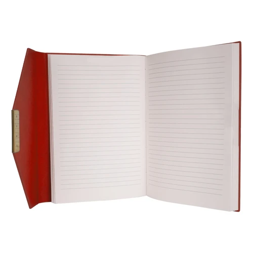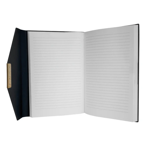 Deluxe Cuaderno tamaño A5 modelo "ENVELOPE", con tapas duras de cartón forrado en PU eco-cuero, con 80 hojas lineadas blancas. Contiene cierre metálico imantado color dorado.