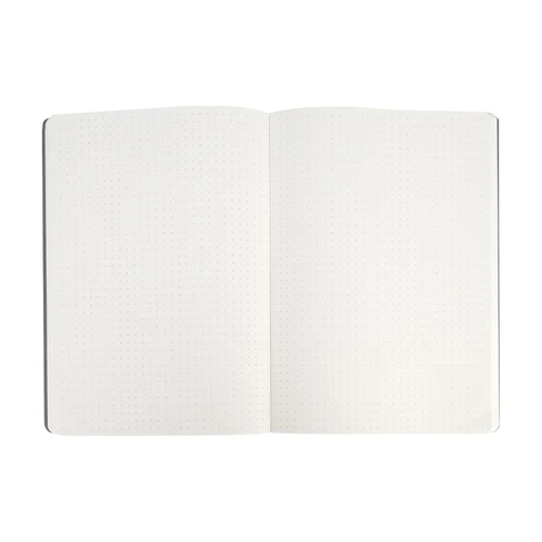 Deluxe Cuaderno tamaño A5 modelo "SOFT", con tapas blandas de Termo-PU acabado mate, con 96 finas hojas color crema FSC IVORY PAPER de 80g/m2 con punteado "mental". Único con lomo redondeado, tecnología "Spine Glue Binding", para fácil arranque de hojas.