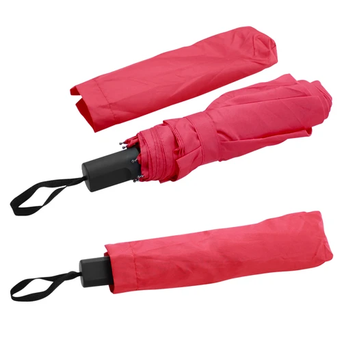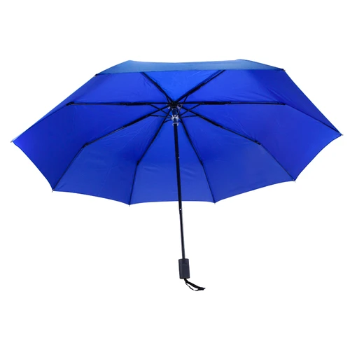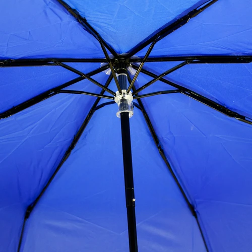 Deluxe Paraguas corto con 8 cascos de tela 190T PONGEE. Cuerpo telescópico de 3 secciones y varas reforzadas de Fibra de Vidrio color negro, sistema de apertura manual. Mango recto de EVA negro con cinta negra para colgar. Incluye funda al tono de 190T PONGEE.