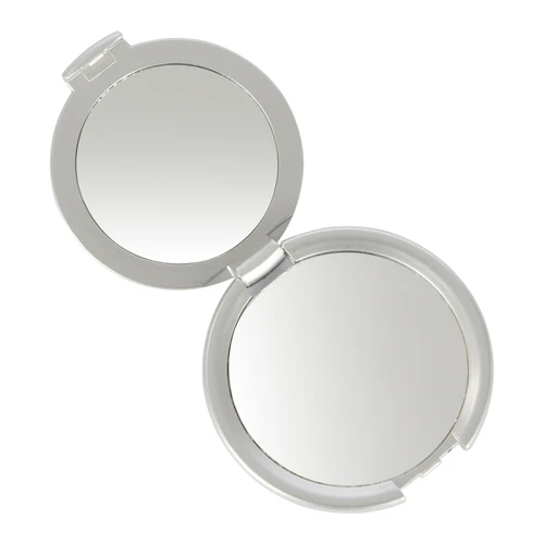 Espejo plástico plateado redondo doble, contiene 1 espejo normal + 1 espejo con aumento.