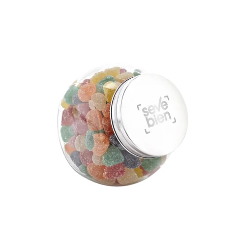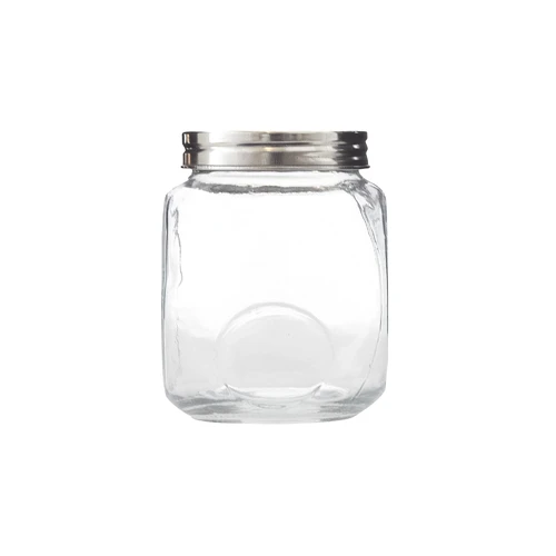 10,5 x 7 cm. Vidrio y acero inoxidable. Capacidad 480 ml. Frasco de vidrio con base que permite apoyarse en dos posiciones.