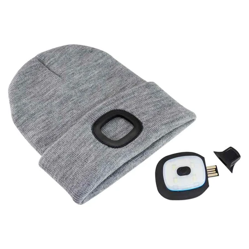 Gorro de Lana con linterna LED, 3 niveles de luz: Estroboscópica, Luz estándar, Luz potente.