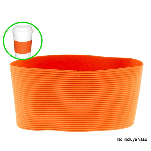 Grip (mango) de silicona texturada de color. Se usa como complemento del vaso plástico blanco M14. Ambos productos se venden por separado.
