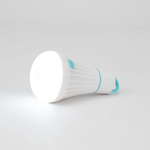 Lámpara con forma de ampolleta con 6 luces LED, magneto y mosquetón para colgar. Con 3 niveles de intensidad + modo parpadeante (blinking). Potencia 1 WATT y 80 LUMEN. Presentación en caja de regalo de cartón blanco.