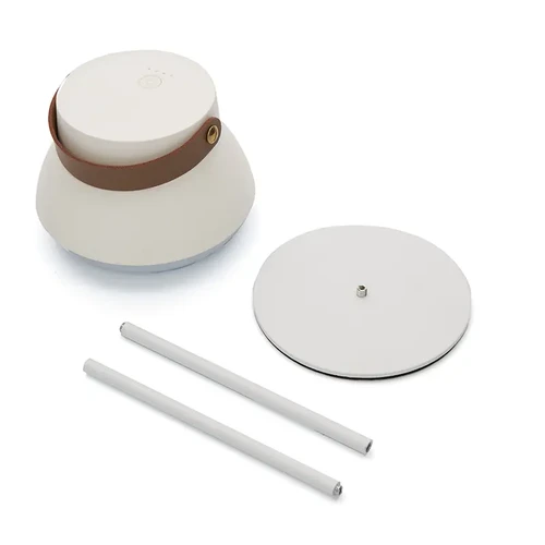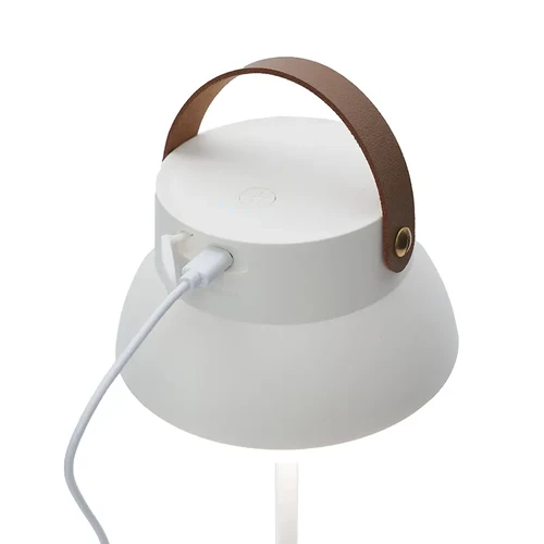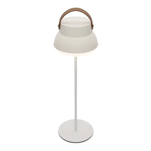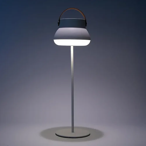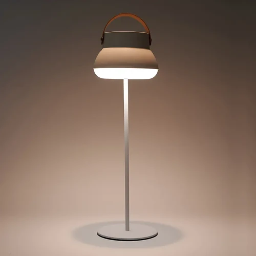 La Lámpara recargable, cuenta con un cómodo agarre superior que facilita su transporte, y también con un sistema retráctil que permite usarla como lámpara de mesa regulable en altura y colgarla en cualquier espacio.