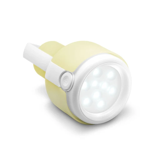 Ø 11 x 19 cm. Plástico. Práctica lámpara doble función. Para usar como farol o como linterna girando el panel LED. Tiene 3 niveles de intensidad de luz y un soporte para sujetarla.