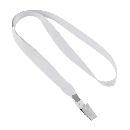 Lanyard Porta-Credencial clásico de polyester liso de 1.5 cm de ancho para sublimación, con terminal pinza metálica.