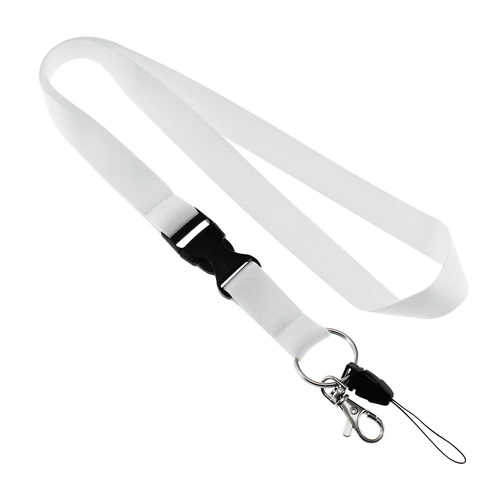 Lanyard Porta-Credencial y Accesorios de Polyester liso de 2 cm. de ancho para sublimación. Incluye tip-top plástico negro, mosquetón metálico y cordón negro porta-celular y accesorios.
