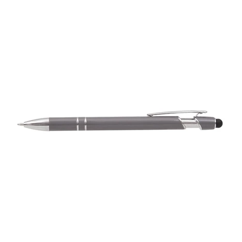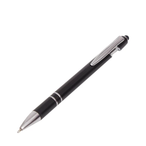 Lápiz de cuerpo sólido, realizado en ABS. Tinta de color azul. Apertura con con clip retractil. Posee touch para pantallas táctiles.