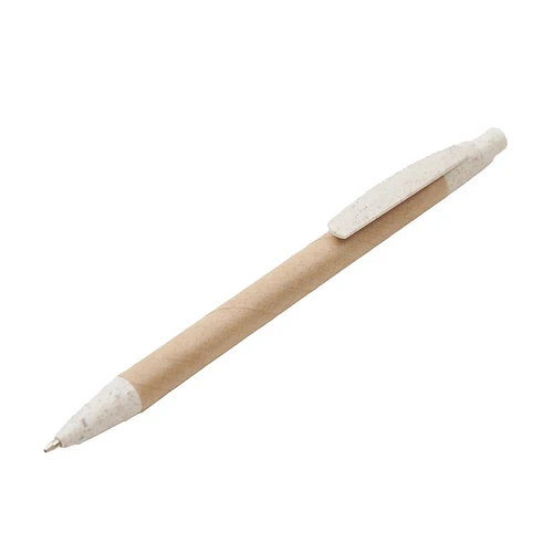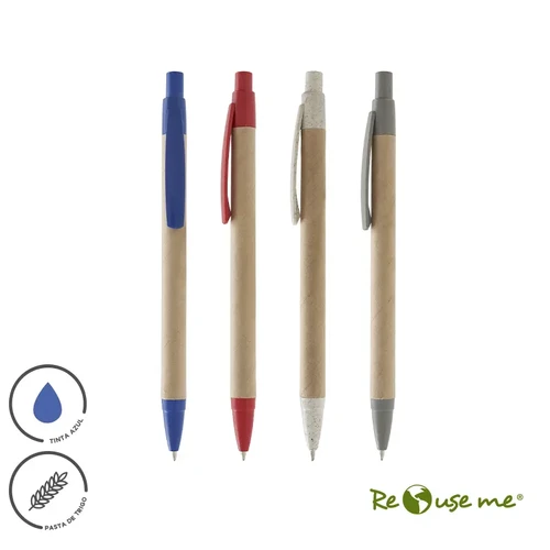 Lápiz realizado en celulosa y Wheat Straw, pasta de tallo de trigo, un material sustentable que reduce el consumo de plásticos vírgenes. Cuenta con clip de apertura retráctil. Tinta azul