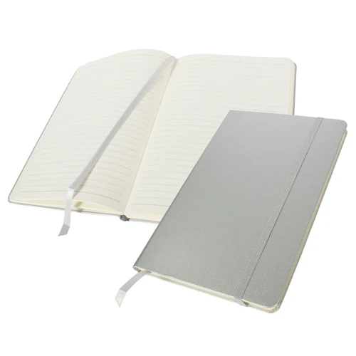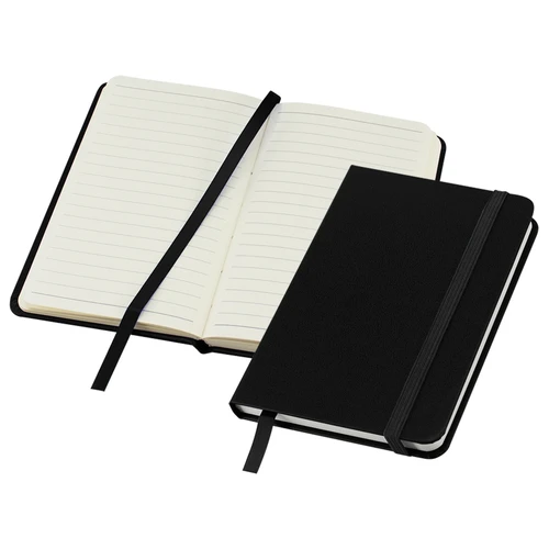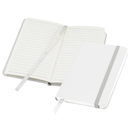 Libreta modelo "Colorskine" tamaño A6, con cubierta de cartón piedra forrada en PU simil cuero de color de 1.5mm de espesor. Interior 80 hojas lineadas amarillas de 80gsm. Incluye banda elástica y huincha separador de hojas al tono. Presentación individual en bolsa de polipropileno.