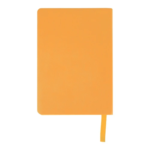 Libreta tamaño A6, con cubierta de PU eco-cuero de 2mm de espesor y lomo pintado de color al tono. Interior 80 hojas lineadas amarillas de 80gsm. Incluye banda separador de hojas al tono. Presentación individual en bolsa de polipropileno.
