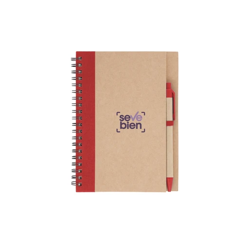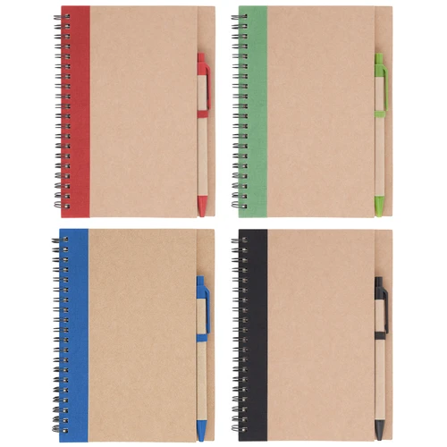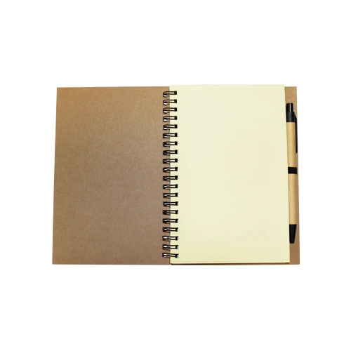 13,8 x 18 x 1,5 cm Elaborada con papel reciclado. Incluye bolígrafo biodegradable. Posee 70 hojas de color amarillo en croquis (sin líneas).