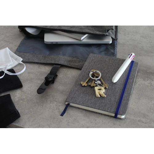 14 x 21 x 1,4 cm. Tamaño similar a A5. Poliéster, Cartón y Papel. 80 páginas, hojas lisas. La libreta perfecta para acompañar el día a día. Con señalador, bolsillo interno en el dorso y cierre con banda elástica.
