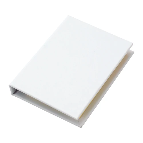 Libretita Memo set Ecológico con tapa dura de cartón forrado blanco. Incluye 125 banderitas adhesivas de colores + 50 notas adhesivas amarillas.