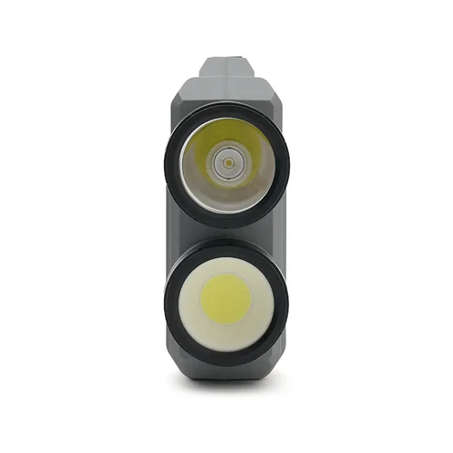 Cuenta con dos niveles de luminosidad en su modo linterna: luz alta, que brinda una iluminación potente para largas distancias, y luz baja, ideal para un ambiente tenue y funcional. Además, incorpora un panel de luz lateral en modo farol, perfecto para iluminar espacios amplios con una luz uniforme.