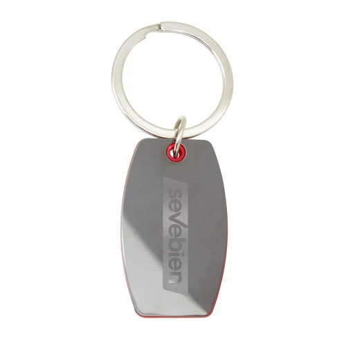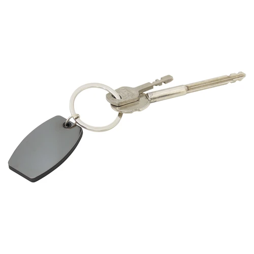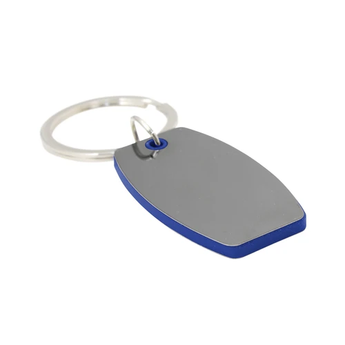 Refleja distinciónLlavero con forma ovalada. Estructura plástica de color con apliques de acero color gris gun de cada lado. Acabado brillante.Medidas: 5 x 3 x 0,35 cm. LLavero de Ø 3,5 cm x 0,2 cm.