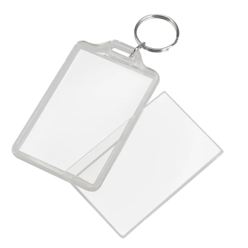 Llavero grande porta-foto de Acrílico transparente. Para insertar papel impreso en compartimento interior.