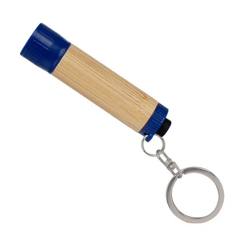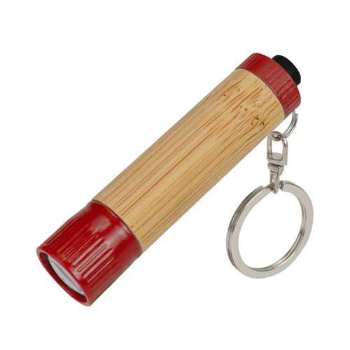 Llavero-Linterna LED con cuerpo de madera de Bamboo. Con terminales plásticos de color.