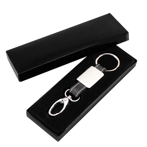 Llavero Metal Eco-cuero modelo "Technic". Presentación en estuche laminado negro con cuna aterciopelada.