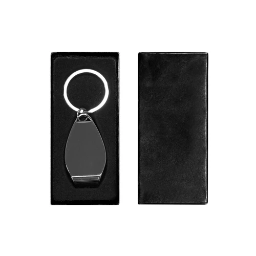 2,8 x 1 x 5 cm Metal. Llavero plano que se puede usar como destapador. Presentación en caja de regalo.