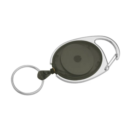 Llavero con Mosquetón y extensor retráctil, en color traslúcido.