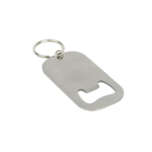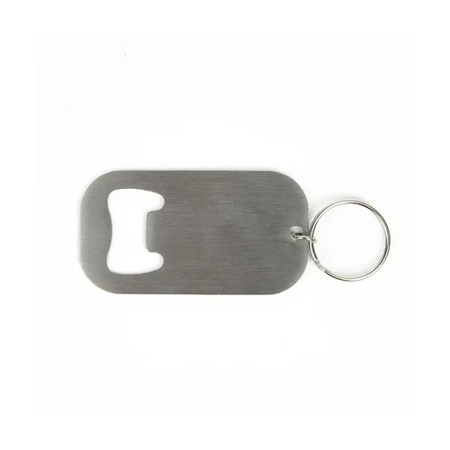 Llavero destapador metálico ultraresistente. Fabricado en Acero inoxidable 420 en color plateado. Cuenta con Anilla porta llaves y cuerpo plano de fácil agarre. Es ideal para Eventos promocionales, kits corporativos y uso diario