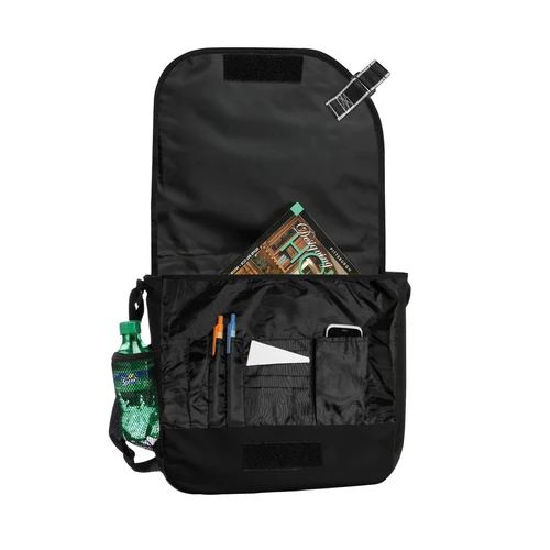 Maletín Portadocumentos de tela raquelada Polyester 600D modelo "Messenger", con solapa delantera, organizador interior y salida para auriculares.