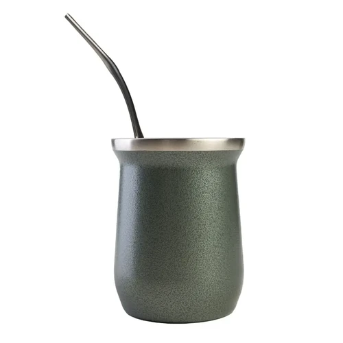 Mate realizado en acero inoxidable bicapa 304 (18/8). Cuenta con doble pared aislante que mantiene la temperatura durante toda la cebada, manteniendo 30 minutos el agua caliente y 3 horas el agua fría. No traspasa sabores ni aromas a tu yerba. Producto libre de BPA. Incluye bombilla de acero inoxidable. Medidas: Altura: 10.5 cm. Diámetro: 8 cm. Capacidad: 256 ml. Colores disponibles: Verde y Negro.