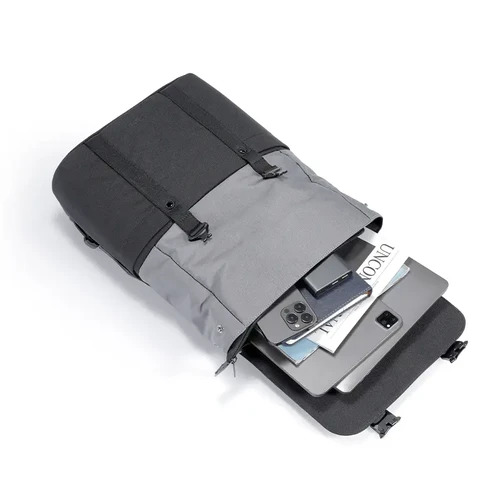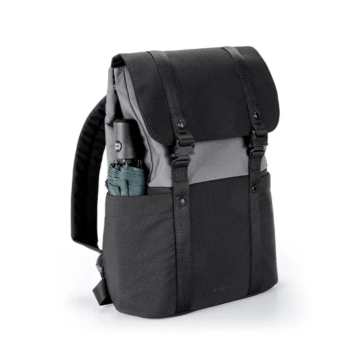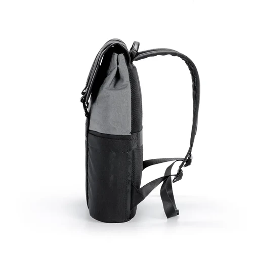 Mochila urbana hecha a base de poliéster reciclado 450D. Cuenta con un compartimento principal amplio, solapa con broches, correas ajustables y un diseño bicolor moderno. Ideal para levar todo lo necesario al trabajo, universidad o salidas diarias con estilo y comodidad.