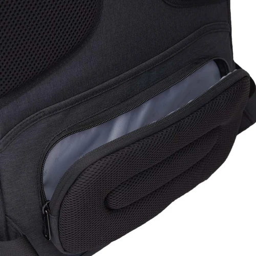 Mochila realizada en Poliester, con respaldo y correas acolchadas. Cuenta con dos compartimientos principales con cierre, uno de ellos completamente acolchado para notebook. Tiene un bolsillo secundario en el frente. Además, cuenta con un bolsillo con cierre, oculto en el respaldo para proteger objetos valiosos.
