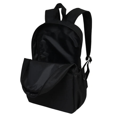 Mochila de poliéster 600D/PVC, modelo "CLASICA". Capacidad 14 litros, tamaño 28 x 42 x 12 cm. Incluye compartimento principal, bolsillo delantero y 2 compartimentos laterales para guardar botellas. Con forro interior de nylon negro. Correas ajustables.