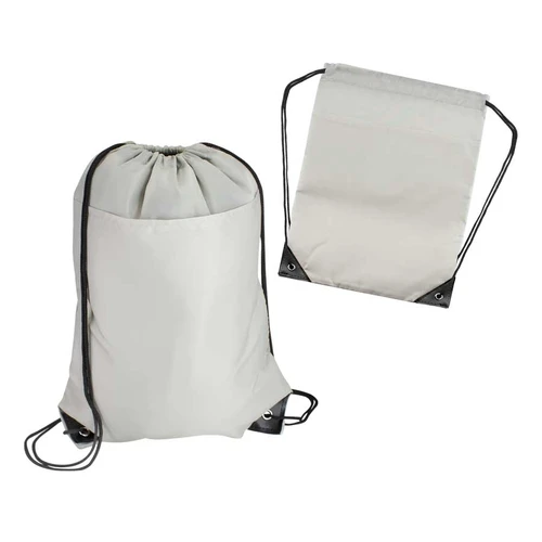 Mochila modelo "Cooler" de poliéster 210D/PU, interior tela aislante gris 12C PEVA, con relleno de esponja PE FOAM de 2mm. Ojetillos reforzados con PU negro. Bolsillo delantero exterior. Tiras de cordón negro.