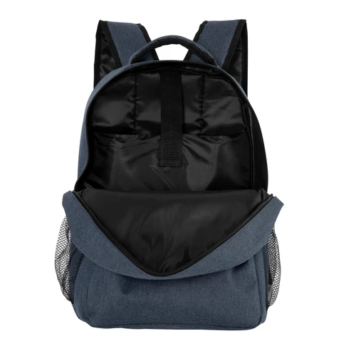 Lleva lo esencial bien resuelto.Mochila portanotebook de hasta 16 pulgadas. Compartimento principal con cierre bidireccional. Interior con bolsillo acolchado portanotebook y cierre con velcro. Amplio bolsillo frontal horizontal con cierre. Dos bolsillos laterales de red elastizados porta botellas y accesorios. Asa superior, correas y espalda acolchados. Correas ajustables. Tiradores de cierres metálicos color negro.Medidas: 42 x 30 x 14 cm.