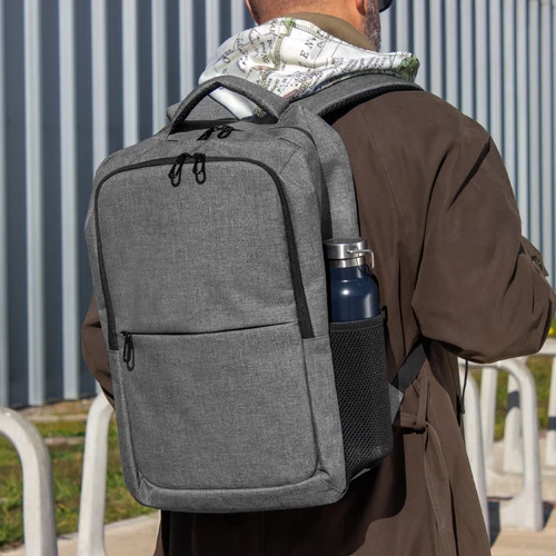 Viaja con confianza.Mochila portanotebook de hasta 16 pulgadas. Cuenta con dos compartimentos, el compartimento principal con bolsillo acolchado para la notebook y bolsillo organizador. frente con bolsillo horizontal con cierre y 2 bolsillos laterales de malla porta botellas y accesorios. Asa superior, correas y respaldo acolchados. Correas ajustables. Tira para sujetar la mochila en la manija extensible de un equipaje de mano. Tiradores de cierres metálicos color negro.Medidas: 44 x 30 x 15 cm.