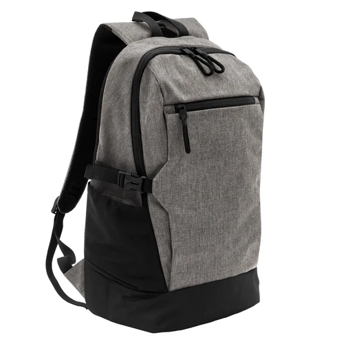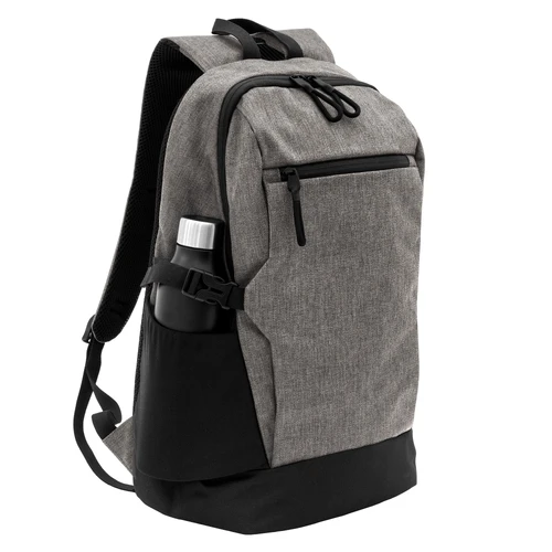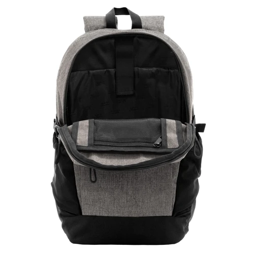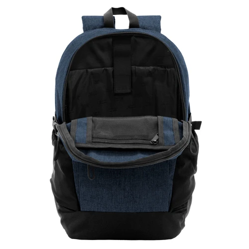 30 x 45 x 17 cm. Capacidad 23 litros aprox. Sarga de algodón y Poliéster. Mochila portanotebook. Compartimento principal con cierre. Interior forrado impreso con logo Nomawalk, con división acolchada porta notebook de hasta 16 pulgadas y bolsillo de red con cierre. Bolsillo frontal horizontal con cierre y dos bolsillos de lycra laterales porta botellas y accesorios, con cintas de amarre. Correas regulables y espalda con red para ventilación, ambas acolchadas. Cierres metálicos con tiradores de cordón.