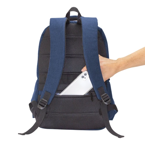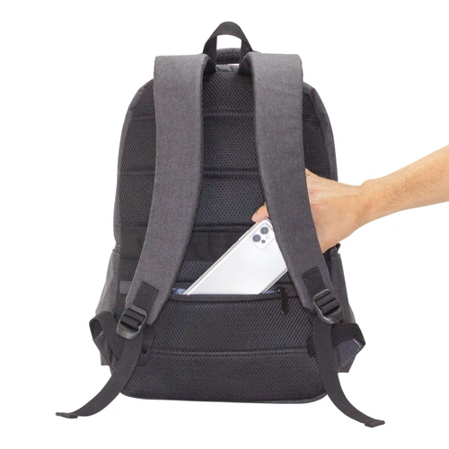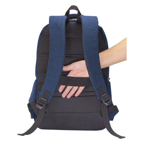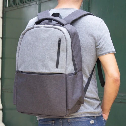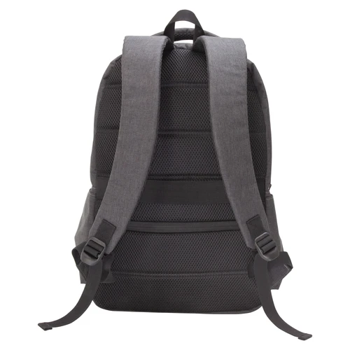 43 x 30 x 16 cm. Capacidad 20 litros. Poliéster wulong 300D. Interior forrado en 210D en color gris. Mochila portanotebook de hasta 15 pulgadas. Compartimento principal con bolsillo acolchado para la notebook y bolsillo organizador. Frente con 2 bolsillos con cierre, uno horizontal y otro pequeño vertical. En los laterales cuenta con dos bolsillos amplios para transportar botellas y accesorios. Asa superior, correas y respaldo acolchados. Correas ajustables. En la parte trasera incluye un bolsillo de seguridad con cierre y tira para sujetar la mochila en la manija extensible de un equipaje de mano. Tiradores de cierres metálicos.