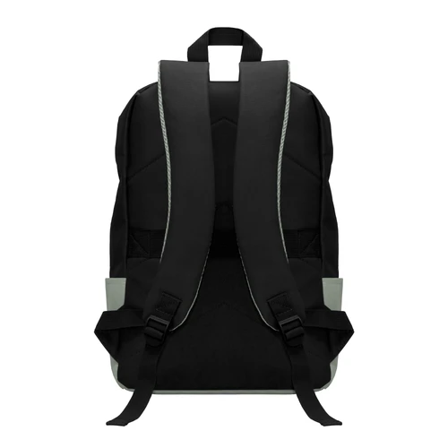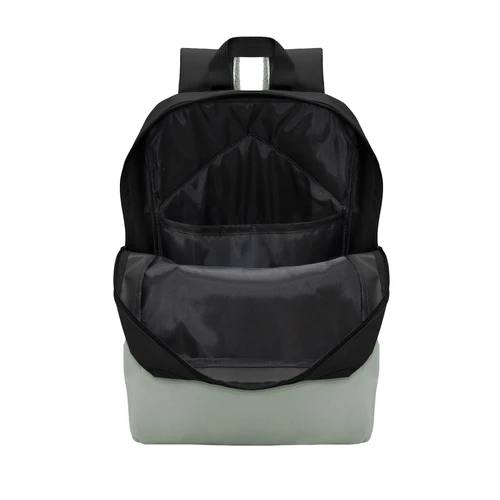 42 x 28 x 10 cm. Capacidad 11 litros. Poliéster 600D. Mochila urbana porta notebook de hasta 15 pulgadas. Bolsillo frontal con cierre horizontal y dos bolsillos laterales. Compartimento principal con bolsillo acolchado para proteger la notebook. Correas ajustables y espalda acolchada. Tiradores de cierres plásticos.