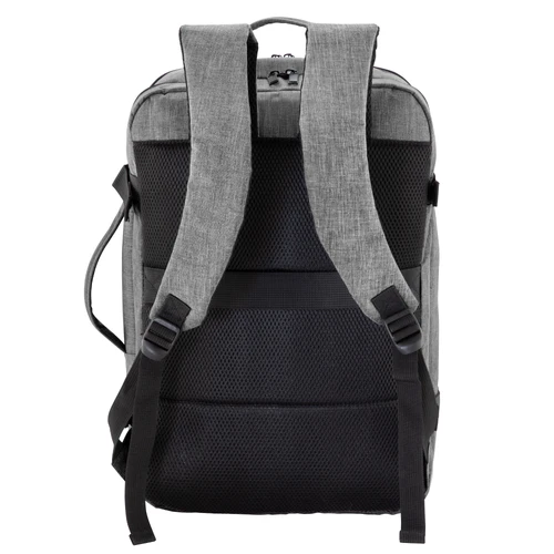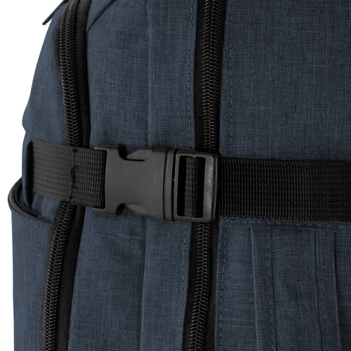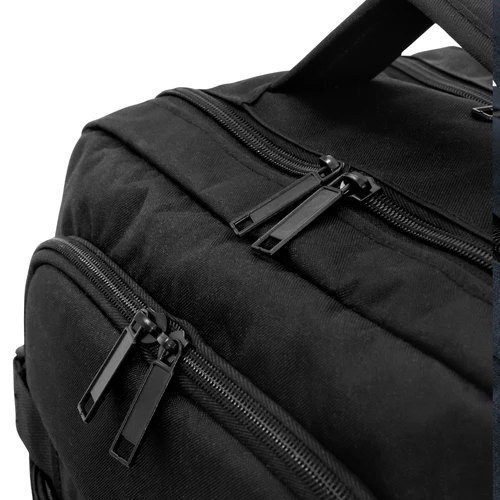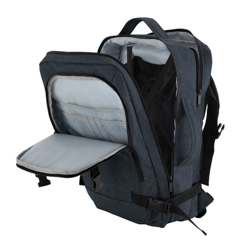 Viaja con todo lo que necesitas.Mochila carry on con 4 compartimentos acolchados. Compartimento principal central con cierre de apertura 360° y elástico con hebilla para contener la ropa en un viaje de trabajo. Compartimento posterior con cierre y portanotebook de hasta 17 pulgadas. Compartimento frontal, exterior con cierre horizontal e interior con bolsillos organizadores. Dos asas, vertical y horizontal para un mejor traslado. 4 correas de hebillas ajustables al volúmen que se traslade. Espalda acolchada con red que permite ventilación. Tira para sujetar la mochila en la manija extensible de un equipaje de mano. Correas acolchadas. Tiradores de cierre plásticos. Medidas: 32 x 46 x 20 cm.