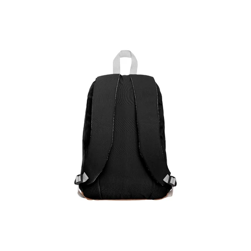 30 x 45,5 x 14 cm Capacidad 16 litros aprox. Poliéster 600D y PU. Mochila con bolsillo frontal con cierre de apertura vertical. Correas ajustables y espalda acolchadas. Tiradores de cierre y detalles en la parte inferior en material PU color marrón.