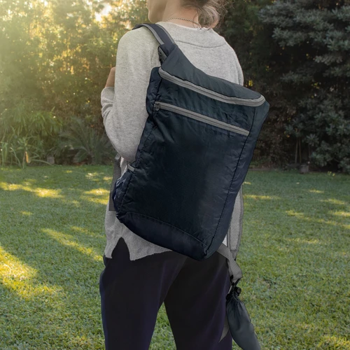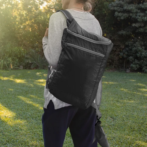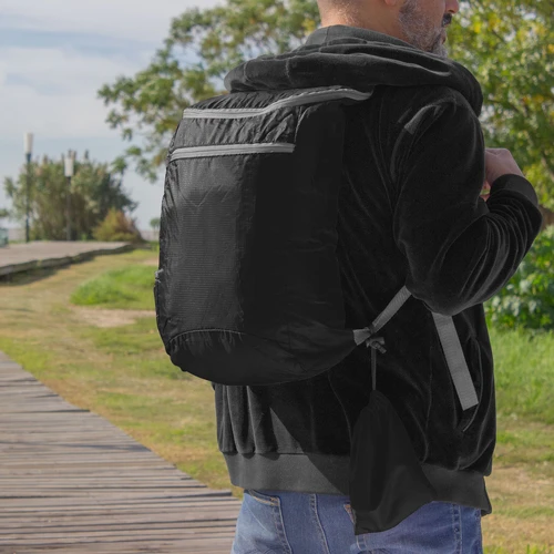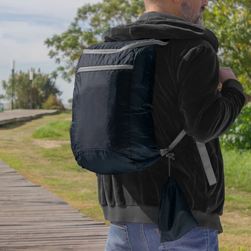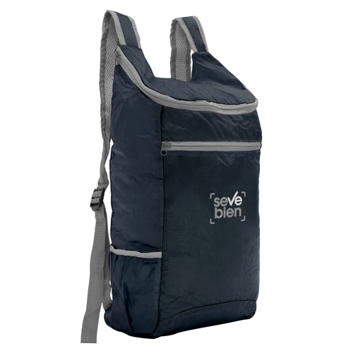 Resistencia y practicidad en cada aventuraMochila plegable. Compartimento principal con cierre. Bolsillo lateral elastizado. Bolsillo frontal con cierre horizontal. Cierres metálicos. Correas regulables reforzadas y acolchadas. Se comprime fácilmente en una bolsa pequeña con cierre ajustable.Medidas: 26 x 43 x 12 cm. (abierta). 13,5 x 18,5 x 7 cm (cerrada)